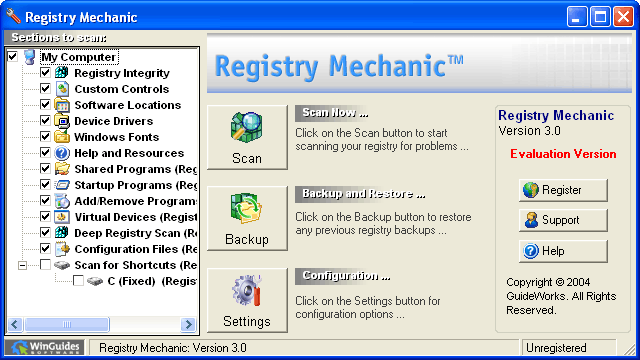 注册表修复工具(Registry Mechanic)是一款傻瓜型的注册表修复软件,通过它只需要几次鼠标点击即可安全清除和修复Windows注册表问题,即使您一点都不懂注册表,也可以在几分钟之内修复注册表中的错误。