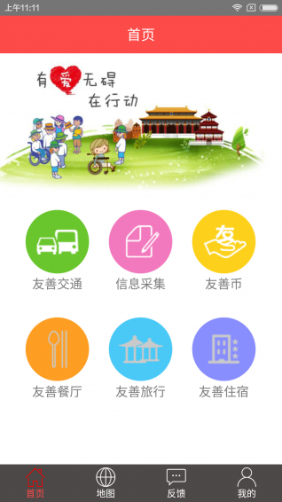 友善出行app是一款以无障碍出行为理念的旅游服务平台,包含北京、上海、广州、深圳、南京、大连六个城市的无障碍出行信息,用户可以通过它查询这些城市的出行、就餐、住宿、旅游等资讯,享受便捷的交通出行服务。