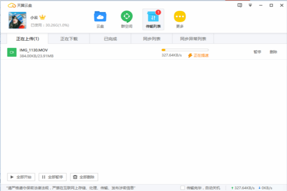 天翼云是中国电信旗下面向最终消费者的云存储产品,是基于云计算技术的个人/家庭云数据中心,能够提供文件同步、备份及分享等服务的网络云存储平台。您可以通过网页、PC客户端及移动客户端随时随地的把照片、音乐、视频、文档等轻松地保存到网络,无须担心文件丢失。通过天翼云,多终端上传和下载、管理、分享文件变得轻而易举。【软件特色】