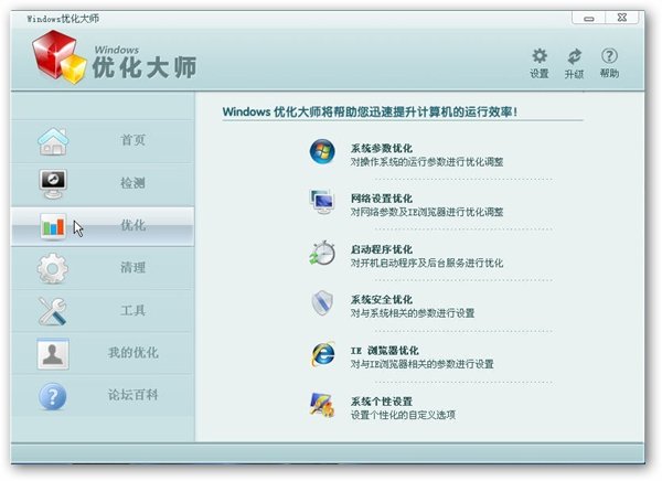 具有全面的系统优化选项向用户提供简便的自动优化向导
