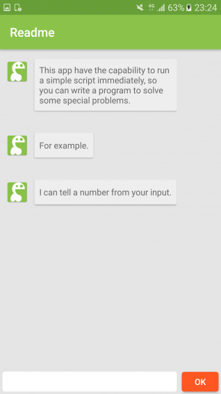 Hello World是一款带有简单解释器的工具类App,它允许用户编辑并运行一段脚本语言,该脚本语言有点像java,同样支持类的使用。App提供了一些系统的操作类或方法,使用了这个App,你可以用来学习编程,统计数据或者对手机文件进行一些操作。