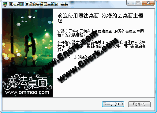 魔法桌面原创xp、vista、windows7通用版浪漫约会桌面主题,主题首先给我们的印象是它绚烂的色彩,如初恋般的场景,相信每个心中充满爱的人都为之感动