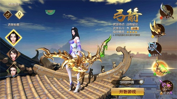 3、生成ID,挑选职业、性别、武器等,点击“开始游戏”。