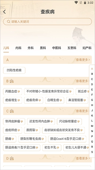 4、举例来说,当用户点击【查疾病】,就能进入功能页面开展免费询诊。