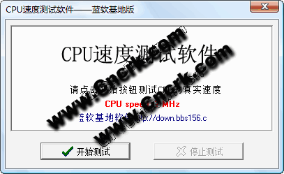 蓝软基地CPU速度测试软件可以以MHZ为单位,随着电脑资源的占用变化随时显示CPU真实速度,能够 很客观的反应你所使用CPU性能的好坏(详细教程下载http://down.bbs156.cn)。
