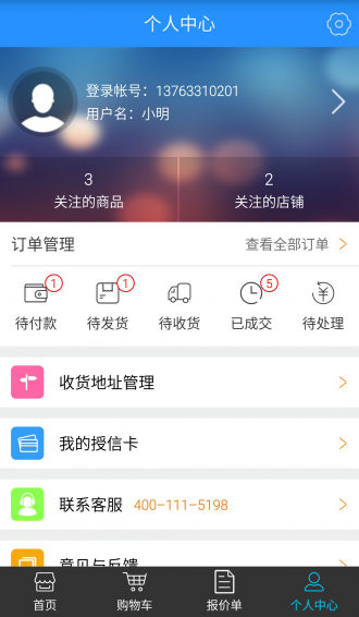 2.选购商品:通过购物车功能或报价单生成订单购物