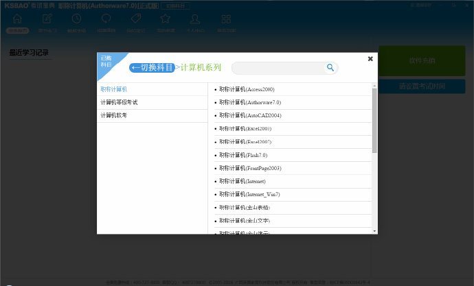 10.涵盖科目:Word2003、WPS、Access、Flash7.0等职称计算机各系列科目,计算机等级考试、计算机软考系列科目。