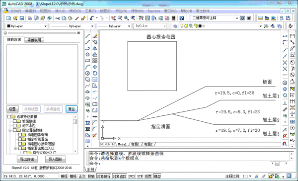 SlopeLEV2.3版本改进(2017年2月)1、增加查询各个圆心稳定系数及显示指定稳定系数的滑面;