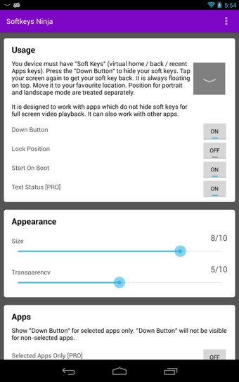 我们每天都观看视频,但基於各种因,一些应用目前也不支持全屏播放视频时隐藏虚拟按键(home/後退/最近使用应用键)。此应用可在选定应用中添加一个“折叠按钮”,用户可以随时按下此按钮,享受真正全屏视频播放。【软件特点】
