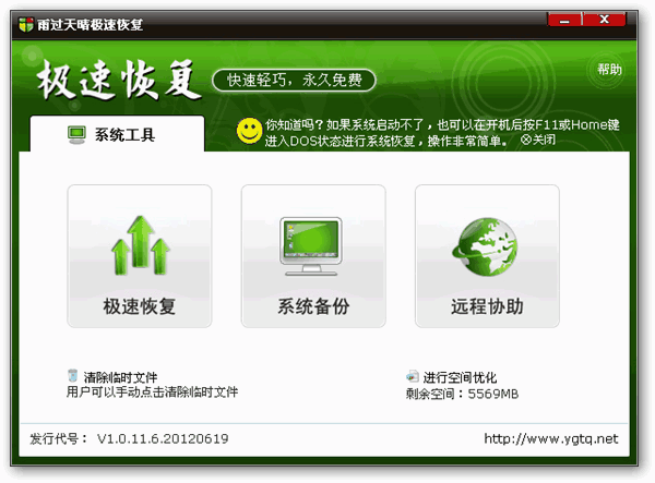 系统启动不了,也可以极速恢复系统,可以在开机后按F11或Home热键恢复。