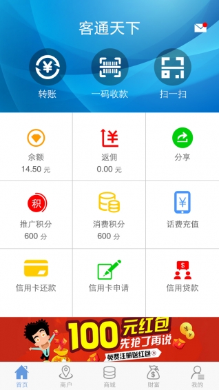 客通天下 v2.6.4 安卓版 客通天下是一款便捷的掌上移动支付应用。该应用不近拥有超多便民服务,还可有效保障用户资金安全,支持移动支付,随时随地更方便,可支持微信,支付宝,京东等多渠道支付方式。