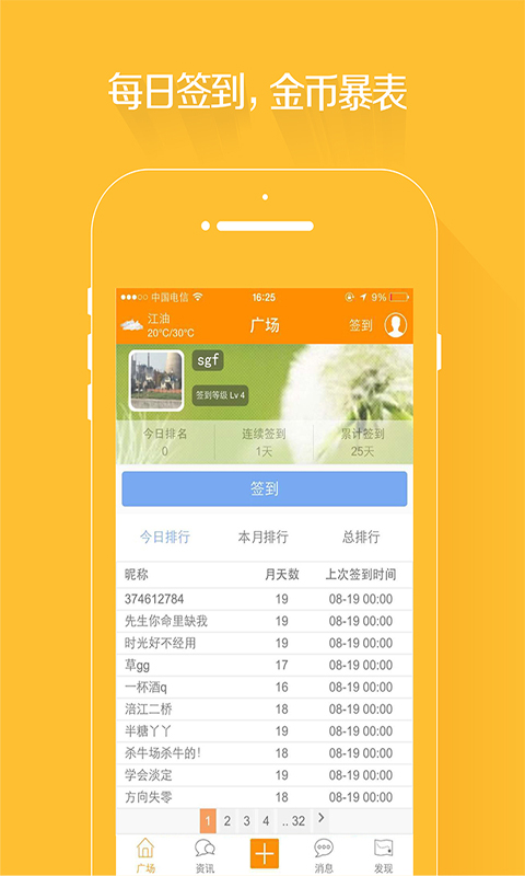 1、首页新增一键懒人签到!2、新增UI样式个人中心!