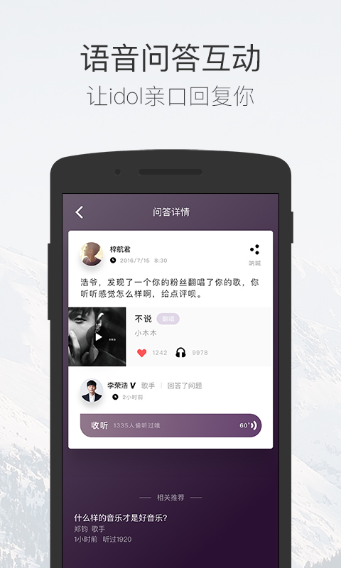 1、在这碎片化的时代已没有磁带唱片,音乐也不再是歌单,点滴碎片的音乐才是音乐娱乐本性的回归2、在碎乐天王天后明星、酒吧地铁DJ、亦或居家写字楼喜欢音乐的你,都可随时随地用音乐表达生活,倾听、目睹不一样的音乐