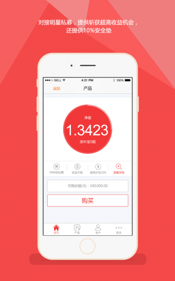 4、添牛宝:对接明星私募,为偏好高收益用户提供了借助私募基金在A股中斩获超高收益的机会,还提供10%安全垫,炒股不如买添牛宝