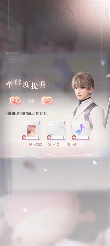 - 限时开启主题活动「日落之前,誓言之后」,参与活动就能免费获取海量限时深空许愿券、钻石、纪念主题曲、全新服装及配饰等丰富奖励!用限定表情包与他聊天,还会触发全屏心动特效。