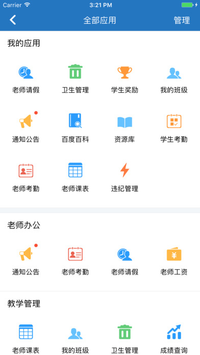 版本3.2.0新增教师审批,老师值日,老师的收发文件管理模块,方便老师办公。