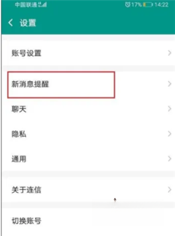 第二步:进入设置页面,接着在其中选择新消息提醒选项。