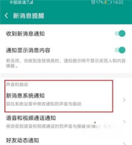 第四步:于新消息系统通知里,点击铃声设置。