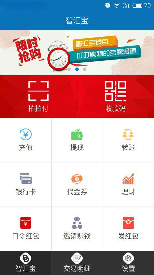 智汇宝钱包 v2.1.16 安卓版 智汇宝钱包app是一款便捷的钱包支付应用。该应用可为用户提供便捷的支付功能,让用户在购物的同时,可以享受多样的理财投资项目,体验可靠、安全的投资环境。