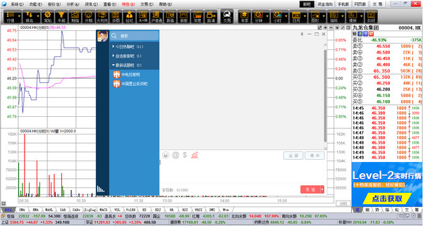 环球快车V6.0是应沪港通,深港通而开发的一款炒股软件,免费提供投资者教育,首創港股,美股即時行情交易+仿真交易平台,永久免費升級。增加沪港通标示,用户轻松找到沪港通,深港通可交易的股票进行交易。【软件功能】