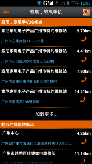 3、精准定位、快速查找周边的厂家维修点及其他附近维修点。