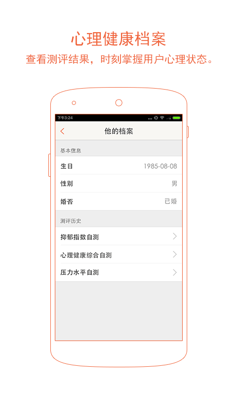 3.心理健康档案:管理用户心理健康档案、测评结果,查看用户近期状态。