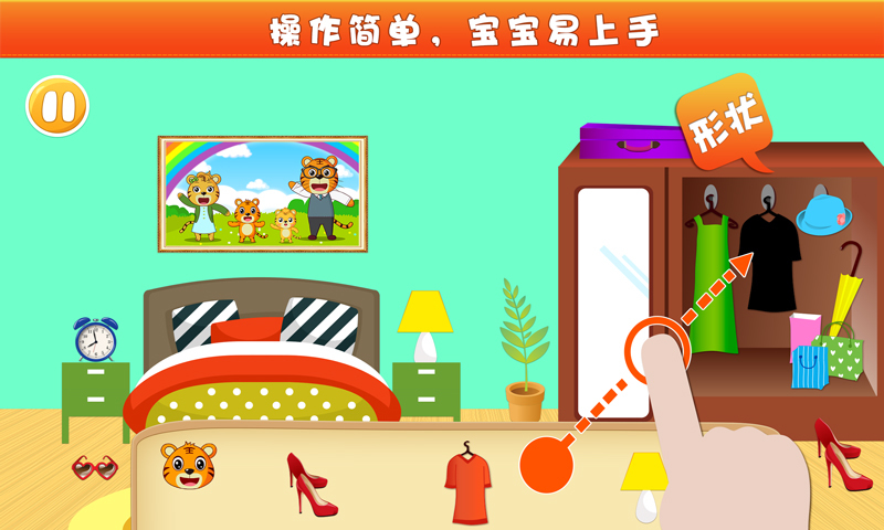 情景式体验,画面精美的家庭场景主题陪宝宝开心认识家里的一切多主题的场景和问题设计,专门针对1~5岁儿童