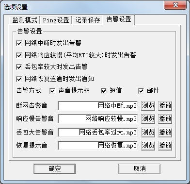 告警声音:当该主机的网络发生中断、丢包过大、响应过慢时发出的告警声音。