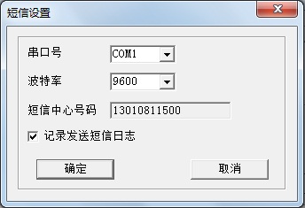 从菜单进入“设置” --> “接口设置” --> “短信设置”窗口,配置短信猫的“串口号”、“波特率”。