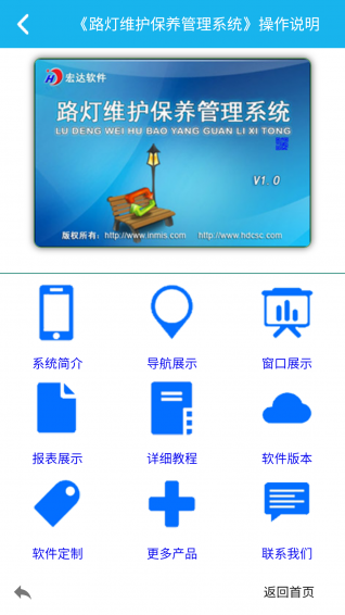 路灯维护管理系统app主要功能包含基本信息、路灯信息、巡查记录。其中基本信息中包含:单位名称、道路名称、灯杆类型、灯组类型、灯组型号、管理人员、巡查人员、审核人员、电表信息、灯杆产权、报修类型。
