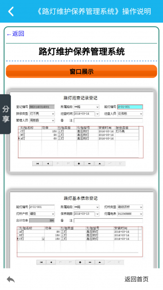 巡查记录:路灯巡查记录、月度报修汇总、检修复验记录、按报修类型统计
