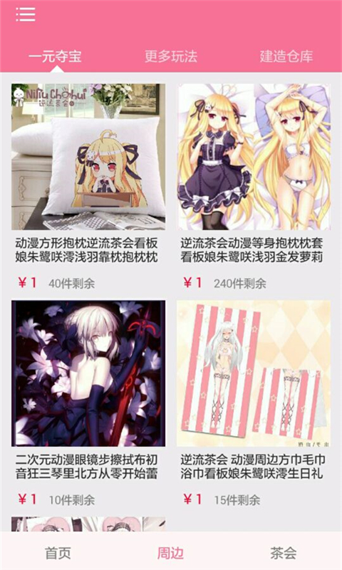 逆流茶会app是一款便捷的二次元夺宝购物平台,玩法和其他的一元云购一样,只是商品全部变成二次元动漫周边商品,用户可以只花一元钱购买商品中奖机会,中不中就要看你是欧洲人还是非洲人啦。