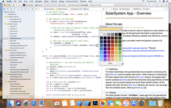 完全支持Swift编程Xcode 6为开发者引入了一种全新的设计和开发应用的方式,深度支持Swift编程,开发者不仅能使用100%的Swift代码来创建一款崭新的应用,还可以向已存在的应用添加Swift代码或框架,并在Swift或Objective-C中查看文档。诸如“Jump to Definition”、“Open Quickly”等在Swift中均能很好地工作,甚至Objective-C的头定义在Swift语法中也能良好地呈现。
