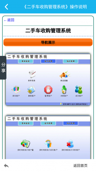 车辆收购管理系统是一款不错的掌上车辆收购系统。该系统软件是专为车辆收购中心所准备的掌上办公应用,它可支持录入客户车辆信息、员工跟单信息,使经营者随时了解收车状况,做出正确的经营决策。