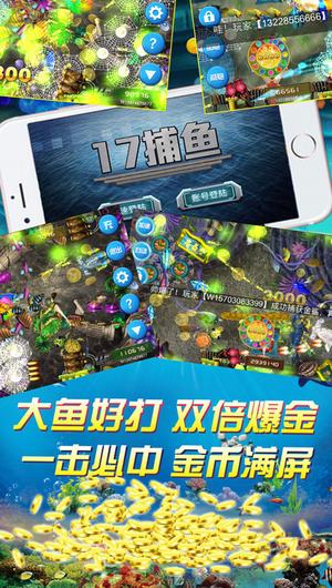 电玩街机捕鱼-好玩的捕鱼游戏终于上线啦!还在为排队捕鱼而苦苦等待吗?17捕鱼让你把捕鱼游戏装进口袋,随时随地享受捕鱼乐趣!操作简单,金币滚滚。游戏中不同的鱼群回报的金币数也不尽相同。只要对准屏幕上的鱼群点击,就会发射出渔网捕捉,你将体验到前所未有的爽快感。