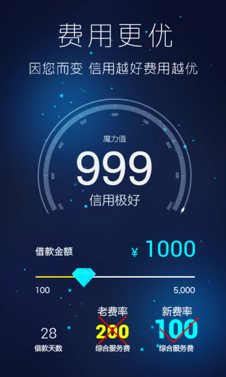 4、收费透明:借款费用清晰明了,借款服务费低至约2元/天,注册、邀请更有服务费减免多重好礼。