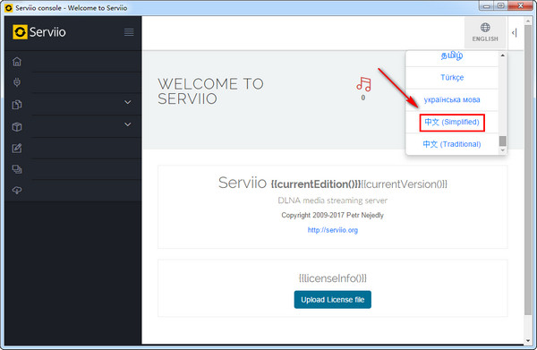4、软件刚开启时是英文界面,您可以在界面的右上角设置为语言。