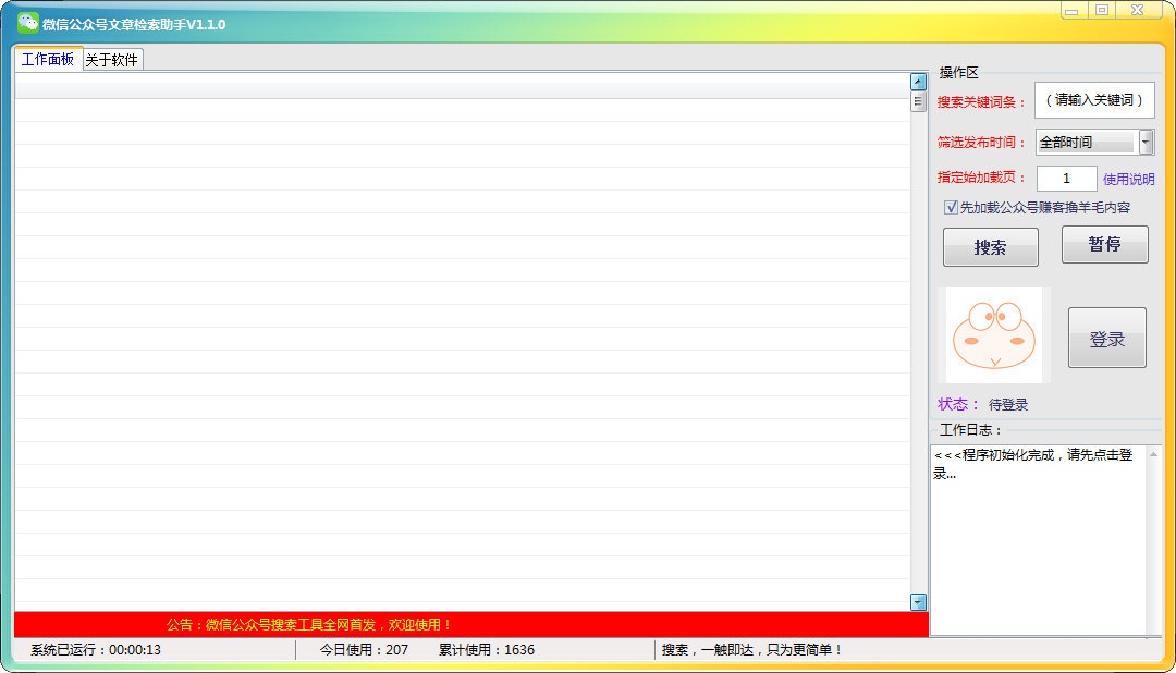 微信公众号文章检索助手是一款小巧好用的文章检索工具,该工具拥有超强的文章检索功能,可以快速对微信公众号中的文章进行精确的检索,第一时间获取你想要的资讯和文章。