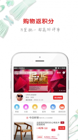 购买商品全额返还等价积分,可在兑换商城兑换商品,商品的质量均经过严格挑选,好物不断,兑换的价格均持平或低于淘宝、天猫和京东等市面价格。