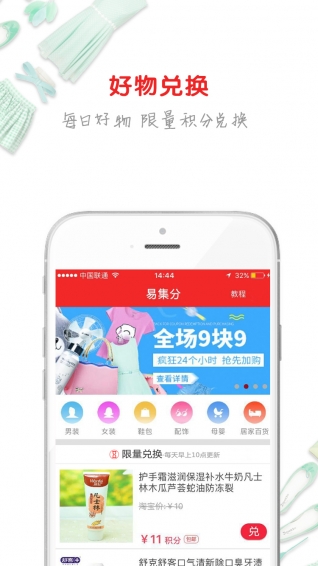 全新积分兑换模式。在易集分购买商品后,返回个人中心界面,填写淘宝、天猫和京东等各大平台的订单号,全额返还商品同等价值的积分。
