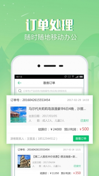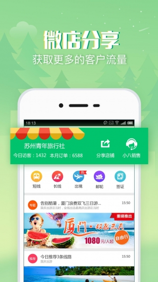 1、支持线路产品查询、分享、下单2、支持订单处理