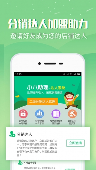 小八助理app是八爪鱼分销系统的手机应用,做到线上线下整合管理。应用旨在分销商用户可以通过应用进行旅游查找、下单及分享,消息通知,订单处理,一键分享店铺,客户管理等操作;供应商用户可以通过应用进行店铺内产品预览及分享,订单消息实时通知,经营数据统计查看等操作。