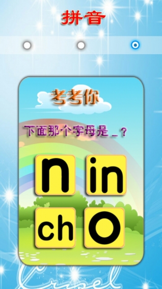 儿童拼音教育,让你的孩子快人一步,能随时随地学汉语拼音字母。通过图文和声音想结合的方式生动形象的向宝宝提供学习资源。显示的图片好所发出的声音让宝宝记忆深刻,启蒙儿童,亲子教育,智力开发。达到事半功倍的学习效果。