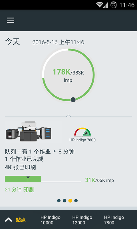 PrintOSMobile应用支持访问选定PrintOS功能。以接近实时的印刷机状态获得控制