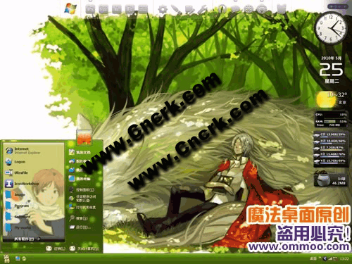 魔法桌面原创XP仿Vista桌面主题——夏目友人帐。本主题包含三种字体版本,默认是宋体版,您可以在“外观”-“字体大小”处切换至微软雅黑版或是Arial字体版。此主题还附带精美的仿Vista登陆界面哦