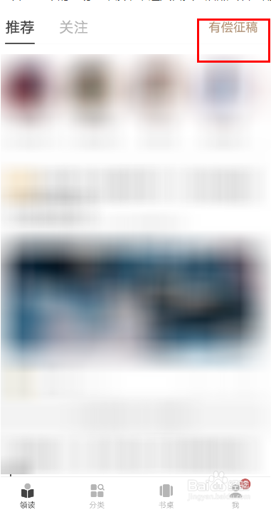 打开手机中的网易蜗牛读书,进入首页之后点击右上角的有偿征稿