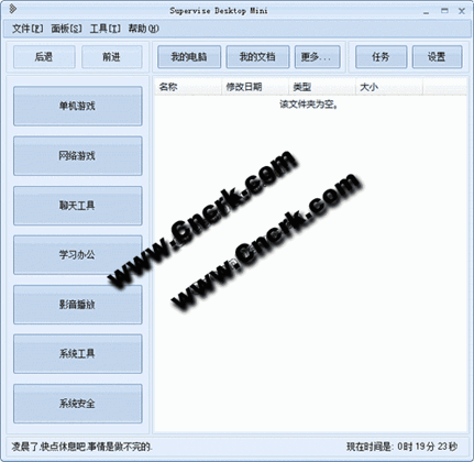 Supervise Desktop Mini V1.0.1 简体中文官方安装版 Supervise Desktop 是一款完全免费的桌面 快捷方式 管理软件。没有任何功能和时间限制。软件体积小,内存占用小(在不使用的时候,仅占1M内存),功能强大,界面漂亮、清爽而且还有很多待开发的插件使用,是家居,办公的好助手;装机必备的好软件。