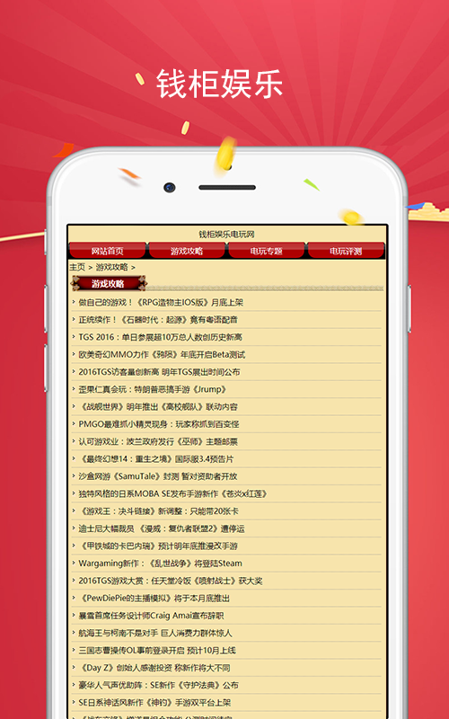 钱柜娱乐手机版是一款游戏资讯阅读类手机平台。通过钱柜娱乐app玩家可快速便捷的查询到《钱柜娱乐777》网提供的最新游戏攻略、评测和资讯,是游戏玩家查询游戏资讯的好帮手。