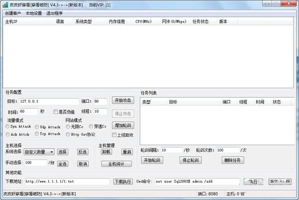 皮皮虾穿盾是一款免费绿色的ddos压力测试工具,它拥有CC模式、SYN模式和UDP模式等,可以分别测试网站、测试IP压力,使用简单,容易上手,有需要的可以下载哦。
