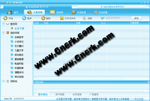 爱书下载阅读器是一款专业的P2P软件,可搜索网络种子资源并下载。软件采用标准的官方BT协议,并提供最新技术的DHT网络支持,具有无Tracker种子服务器状态下的搜索下载功能。